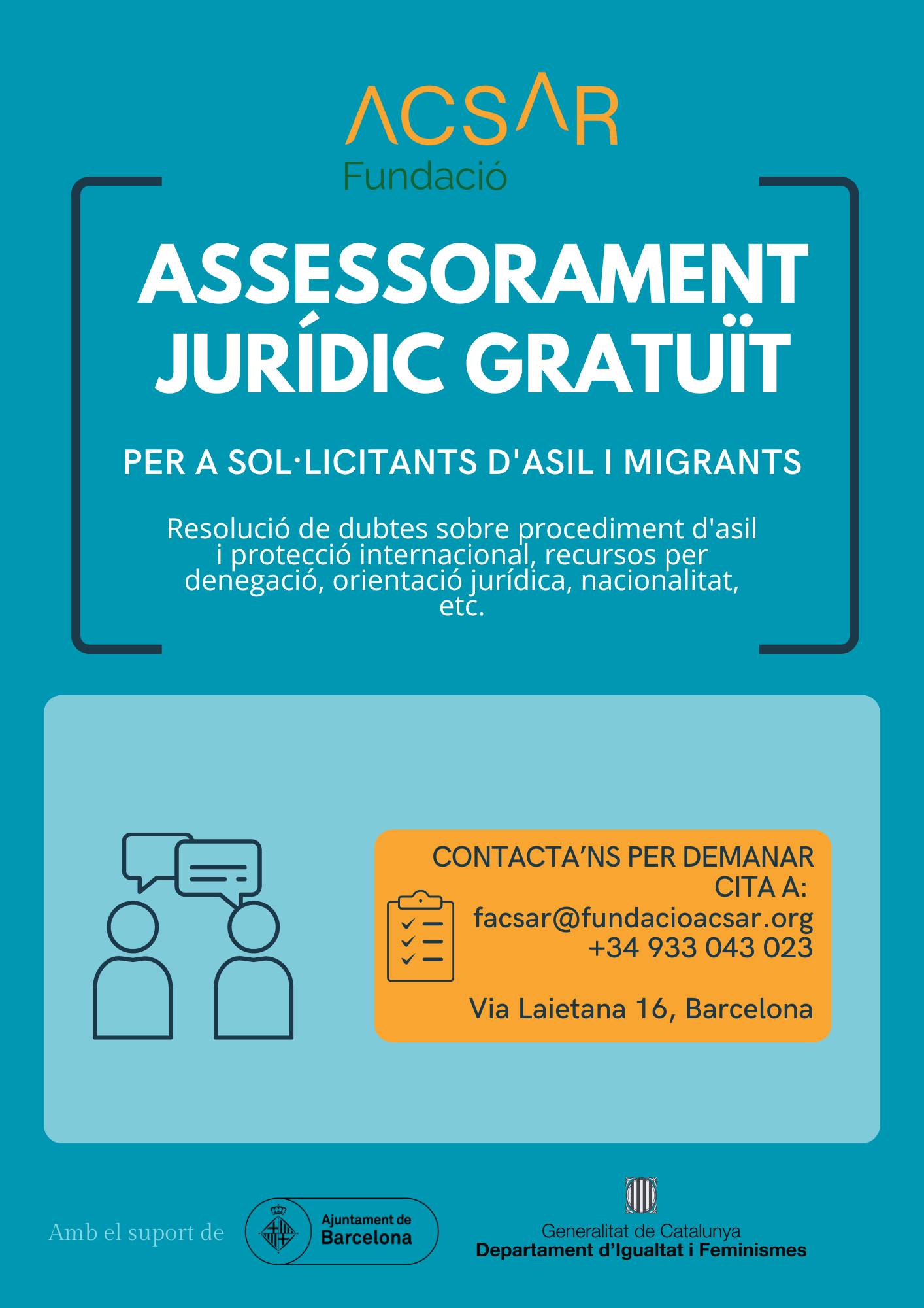Les sessions informatives per a persones sol·licitants d’asil, refugiades i immigrants de la Fundació ACSAR tenen com a finalitat primordial donar orientació i assistència en matèria de protecció internacional, incloent-hi tant el dret d’asil com la protecció subsidiària. Així mateix, s’admeten casos relacionats amb estrangeria, especialment aquells en els quals concorren raons humanitàries o d’arrelament amb certa vinculació a la matèria d’asil i refugi.
