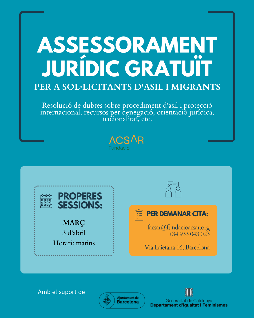 Sessions informatives per a persones migrants, refugiades i sol·licitants d’asil